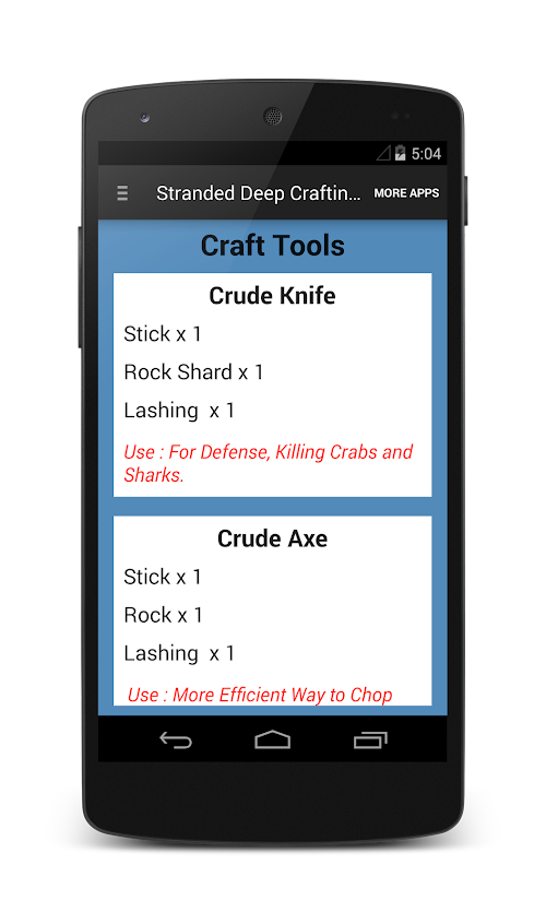 If you are looking to download other versions of Crafting Guide Stranded Deep Android App, We have 1 version in our database. Please select one of them below to download.