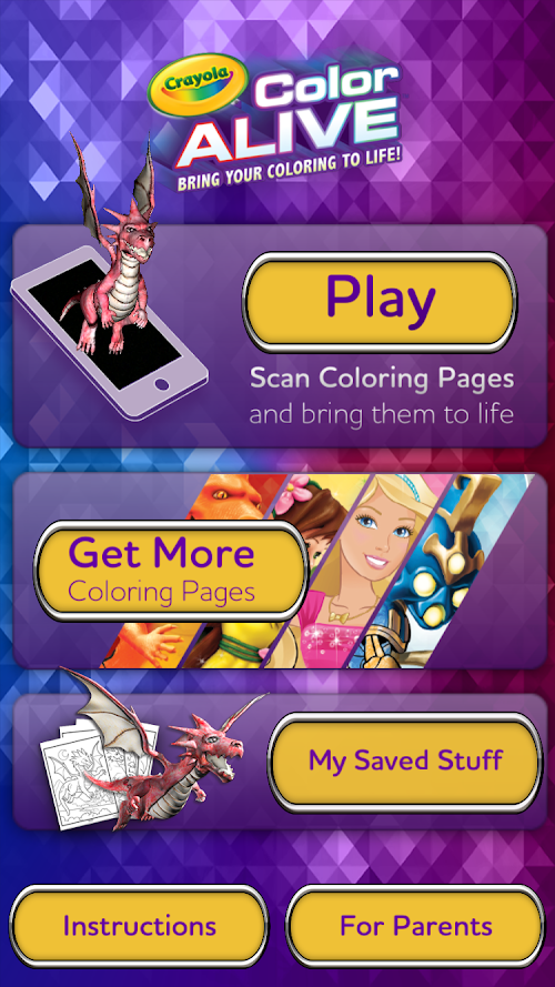 This app works with Crayola Color Alive Action Coloring Pages. FREE Action Coloring Pages can be found inside the app. Save and print them to start playing right away! For more pages, purchase Color Alive Action Coloring Books through the app or in stores. Use any Crayola Crayons or markers to bring your coloring to life, and apply special effects to your creations.