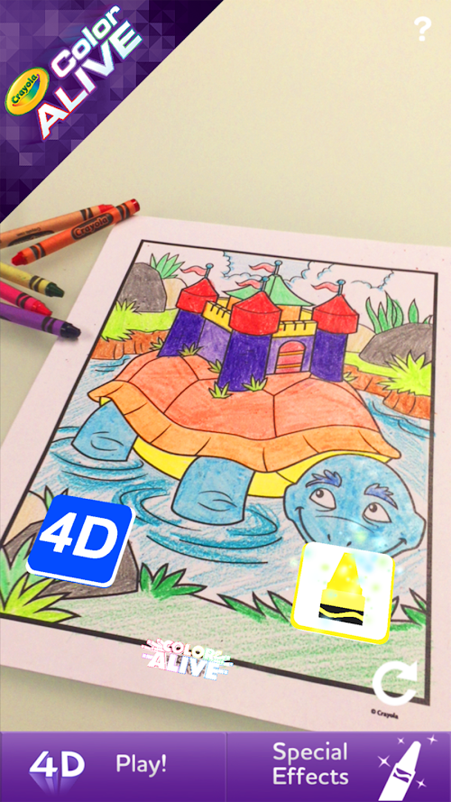 Pairing an innovative 4D app with exclusive Crayola Color Alive Action Coloring Books, Color Alive gives parents and kids the ability to interact with their real world creations like never before. Characters fly out of your coloring pages, coming to life and interacting with you through augmented reality.