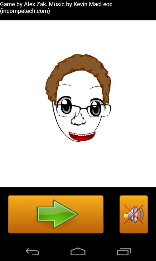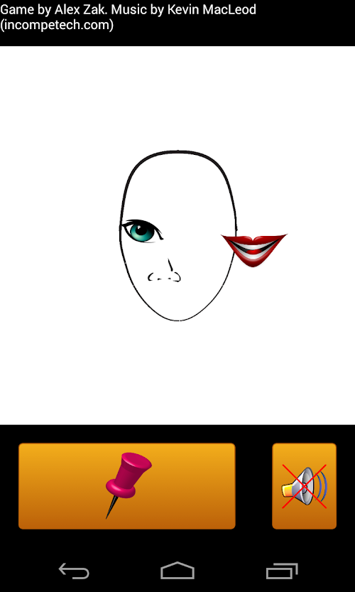 Different parts of the face - eyes, nose, mouth, hair and more fly around the screen. Tap the screen once to have them turn 90 degrees. Click the 'Pin' button to fix the part and move to the next.