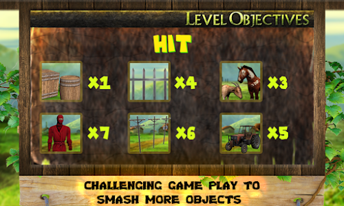 Many hidden objects in the map to be found and smash like Tyrannosaurus dinosaur, angry ninja master, catapult and more.
