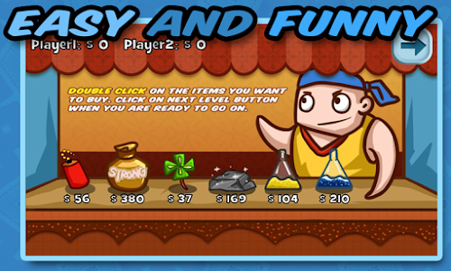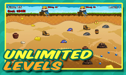 Crazy Gold is easy to control. Launch the hook by clicking on the screen, pull up the gold or other precious and get corresponding coin. We can go to next level when you reached the target coin.