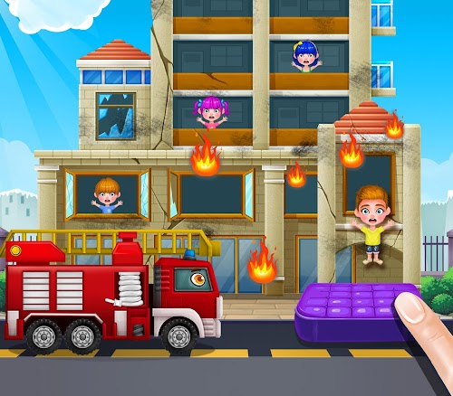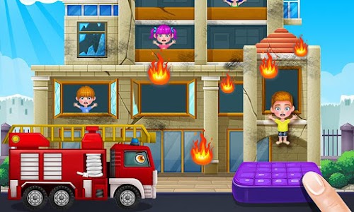 - HURRY save the kids trapped inside the fire! Help them escape from the building and jump down safely onto the safety net!