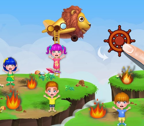 - Then save the kids from the bush fires, help them escape onto the plane!