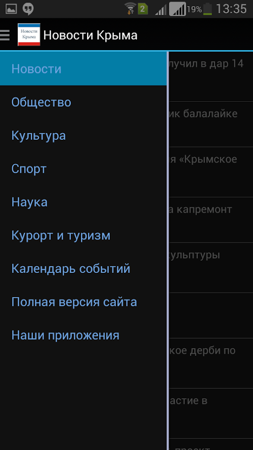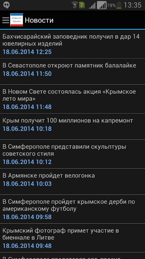 Application "Crimean News" shows the most current news on the Crimea in following topics: