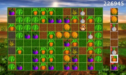 Plant carrots, lettuce, eggplants, onions, and melons in this colorful puzzle game! Line up your crops in vertical or horizontal rows to clear them! When all of your crops are harvested and your weeds and gophers are gone, you've won!