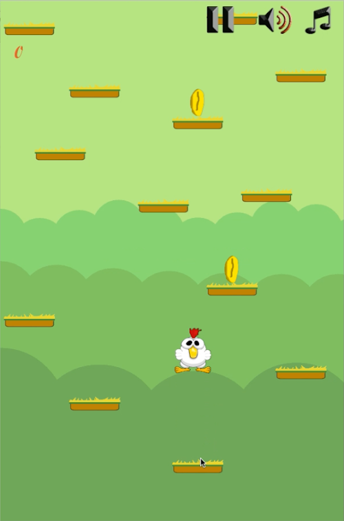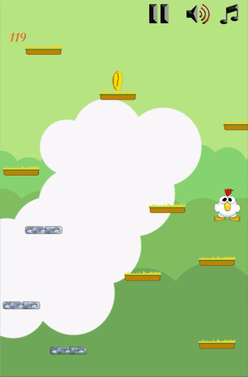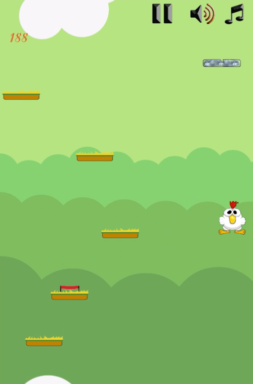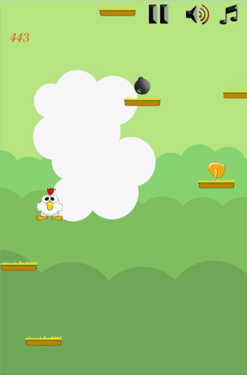 discover The Incredible game touch arcade crossy chicken jump try to climp to the top of the sheet of grass : jump from platform to platform equip Wheat and corn , avoid bombs