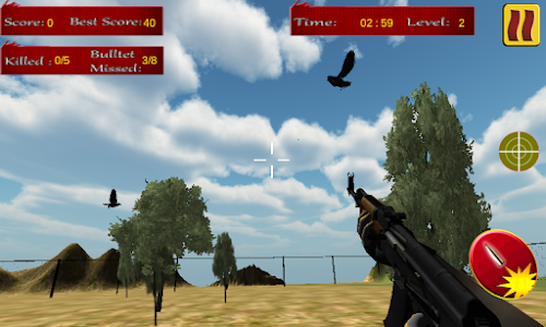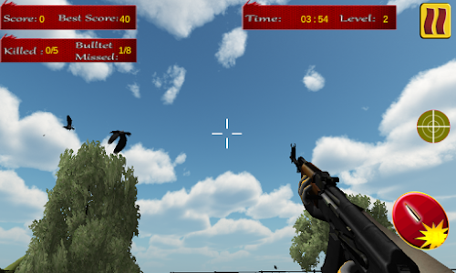 In the environment, there is a jungle with bushes surrounded by mountains or city with high buildings. There are number of crows flying here and there. Your is task is to kill the birds in less bullets and in a specified time shown on screen. You are equipped with Sniper gun and, you have to survive with your accurate firing tactics. If you missed specific number of fires then game will be over.