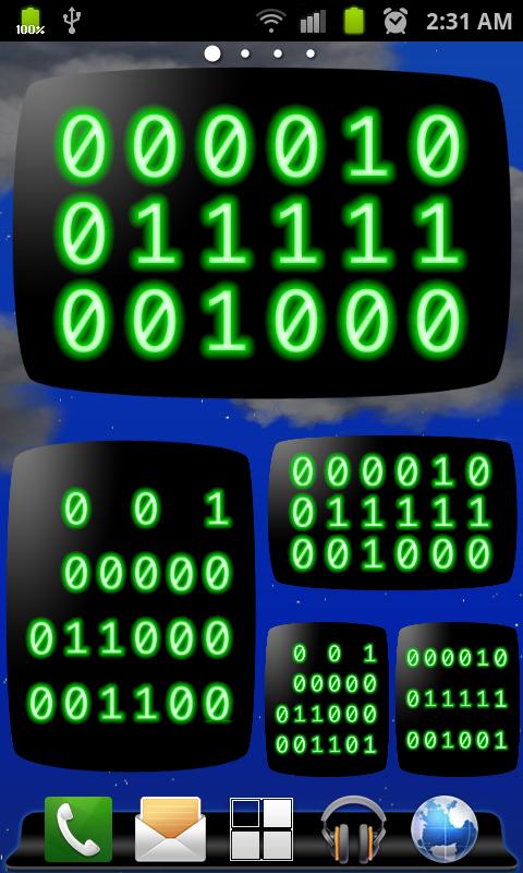Add a touch of geekyness to your home screen with this binary clock widget.