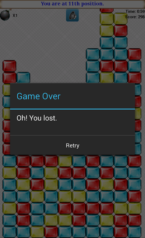 We are giving one feature for removing deadlock condition of game over.Just drag and put bomb object on deadlock blocks, it will blast the blocks.