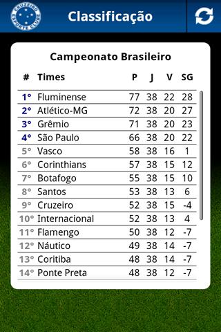 Classificação dos campeonatos que o Cruzeiro disputa como Campeonato Mineiro, Copa do Brasil, Campeonato Brasileiro, Brasileirão e Copa Libertadores.