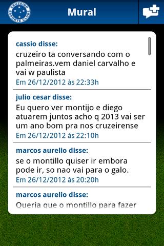 Mural de comentários onde você pode interagir com o restante da torcida e trocar informações sobre o time.