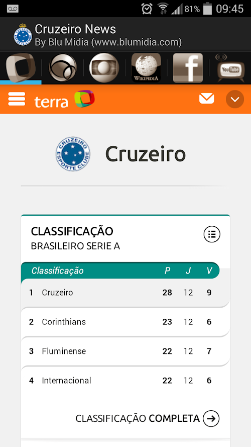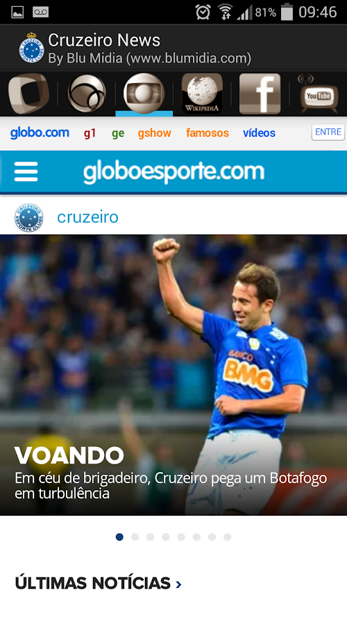 Necessário acesso a internet para obter o conteúdo.Application displays the news and information about Cruzeiro Esporte Clube