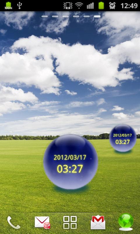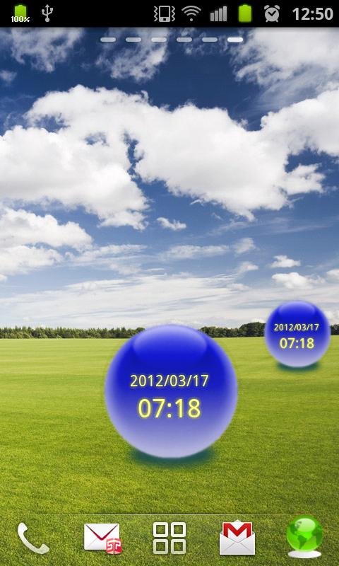 Crystal Clock widget is a simple sphere (1x1, 2x2 size). Changes to various colors depending on the time.