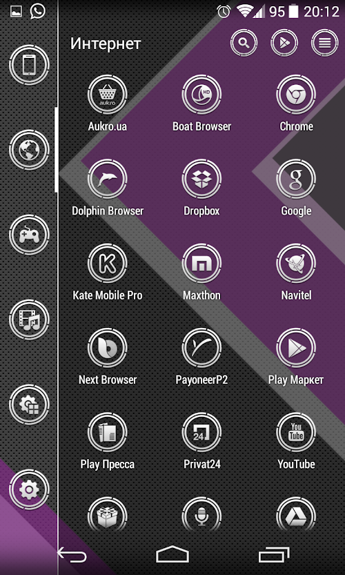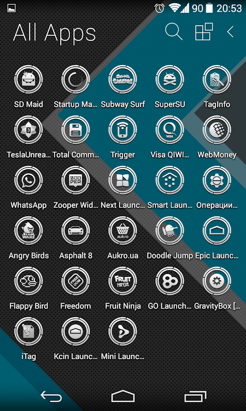 HD Theme for Next Launcher 3D, Smart Launcher, Nova Launcher, Action Launcher, ADW Launcher, Holo Launcher, Apex Launcher, SOLO Launcher, TSF Shell, Mini Launcher, Epic Launcher, Kcin Launcher и Go Launcher and other!