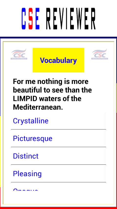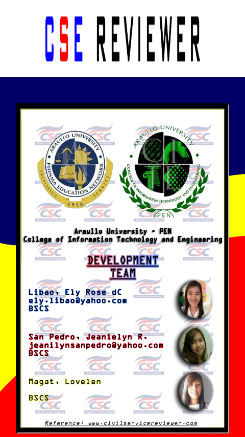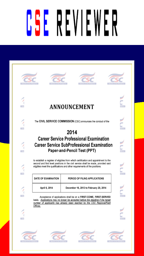 Civil Service Examination (CSE) Reviewer aimed to help anyone who would like to take the Civil Service Examination in the Philippines conducted by Civil Service Commission each year.