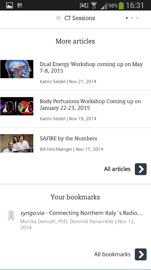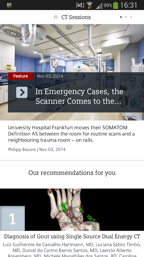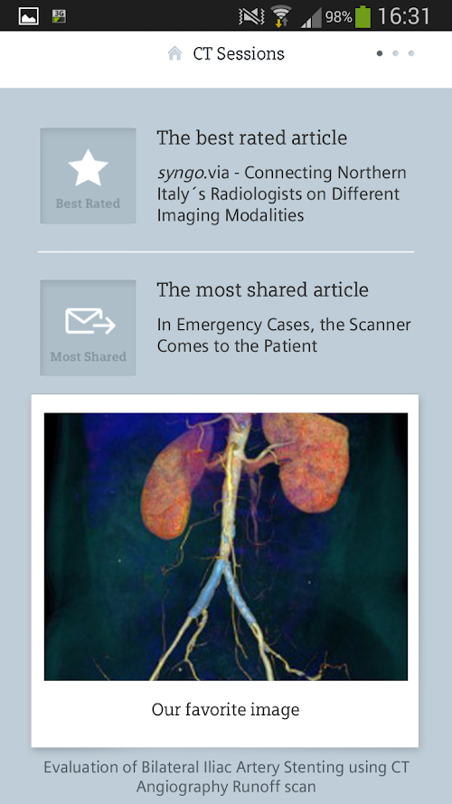 Siemens Computed Tomography Customer Magazine brings you the latest innovations, clinical applications, and visions in computed tomography. This app allows you to access all articles and download them to read offline. Based on your interests you can receive personal recommendations, or you have a look at the articles that have been most shared and best rated by the readers.