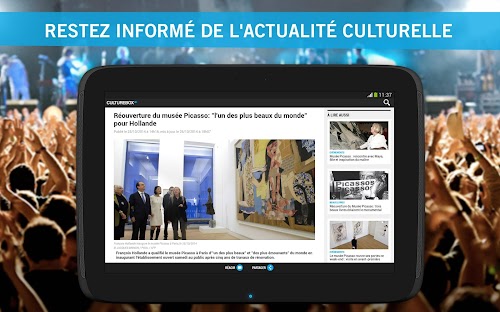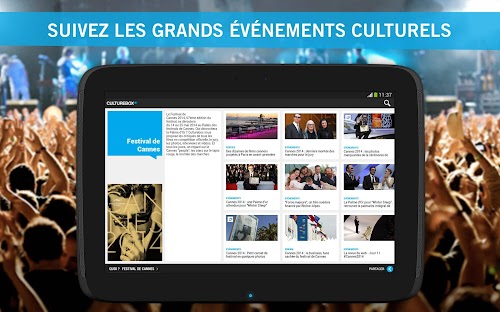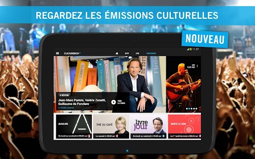 Culturebox digital offering is dedicated to the culture of France Télévisions, which is available on all media: web, mobile web, tablets and connected TVs. With the iPad app / Android Culturebox, you can watch free and live the whole offer live shows on your tablet, stay informed of the latest cultural news and follow all the cultural events of the year.