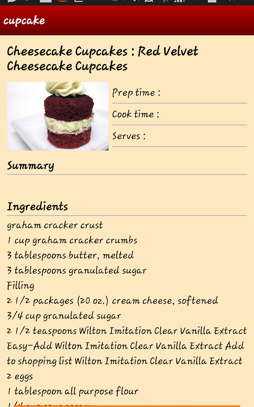 ...and lots more. Now you can save a lot of time and effort and make that "to die for" cupcake that will have everyone raving! No more need to flip through dozens of cookbook or magazine pages. Everything you need is right here in this app. These recipes are tested and true and won't let you down. Quick and easy cupcake recipes are just a FREE download away!! enjoy it