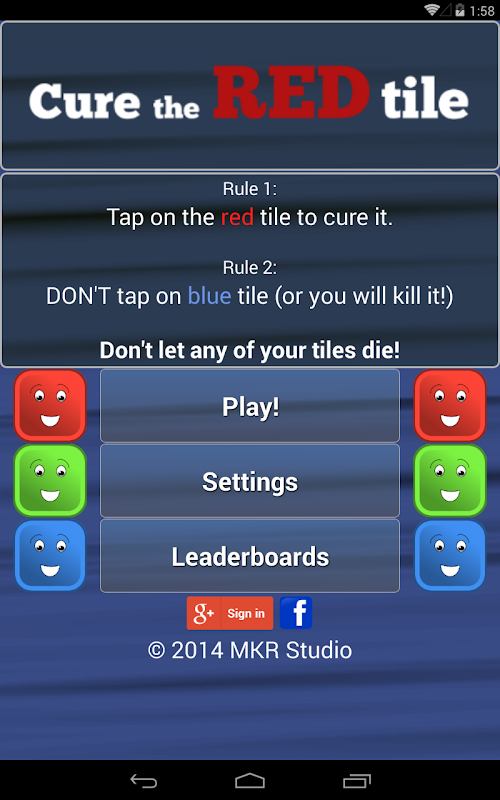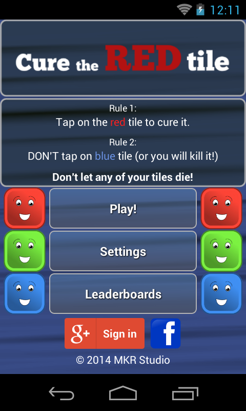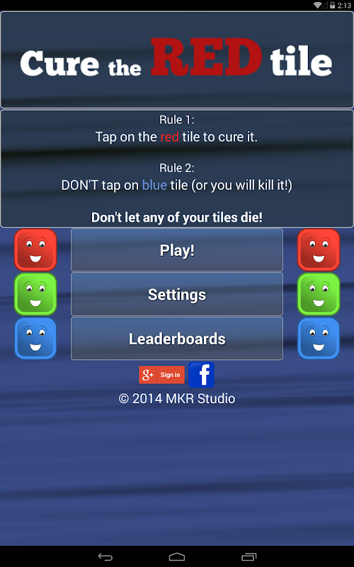 Let me introduce you to a group of nice, happy blue tiles. Unfortunately, the tiles are very fragile and often get sick. An infected tile turns green for a while, then red. Tap on it to cure it before it's too late! At the same time, be careful not to tap the blue tiles, as it will harm them!