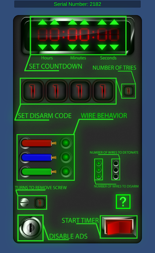 •Wires can be set to any combination of reactions.Cut one to Disarm, Detonate, Increase Countdown Speed, or Decrease Speed!