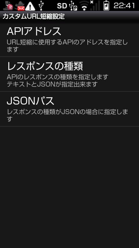 【注意】初期状態ではAPIが設定されていないため必ず短縮に失敗します