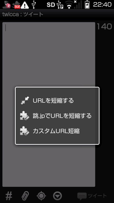 プラグインを導入するとURL短縮ボタンが変わり、短縮方法を選べるようになります
