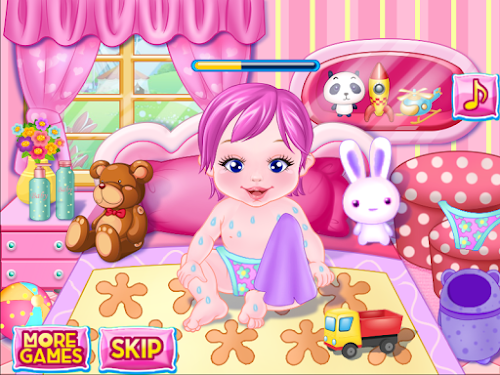 Hi, good of you to come, we were waited for you for a long time because we now have a big problem, we need to get out of town for a day and our child has not somebody to stay with her home. Our daughter's grandparents are very busy so we decided to put an ad and the one who agreed to sit with her today are you. We are very grateful and we have great confidence in you. We're sure you're a responsible child who can take care of a baby. This kids game will give you further instructions. With this game you can prove to your parents that you can take care of yourself when they are at work. Our daughter is sensitive, she needs more attention and patience on your part, so please listen her wishes. You must take into account her opinion when it comes to doing something for her.