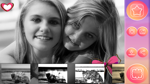 ♥ Cute Girl Photo Editor ♥ contains a collection of beautiful frames for pictures which will simply bring you off your feet. This free image editing app offers you wonderful graphic design and intuitive tap controls which make it easy for everyone to use the app. There are numerous camera effects which make this “photo editor” even more attractive. Choose among black and white, sepia, retro, cartoon and many more photo effect options and enjoy in a wonderful pic decorating activity.