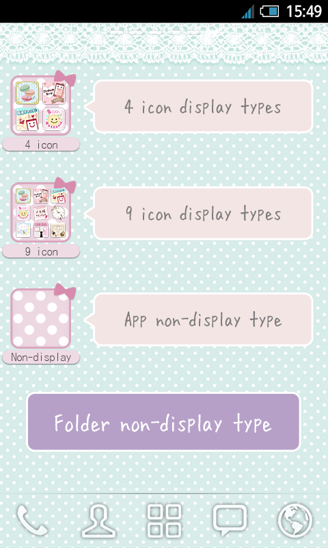 There are many cute and fashionable folders made for girls♪ When you want to arrange the application icons on the home screen, you can arrange the folders you like in a cute way!