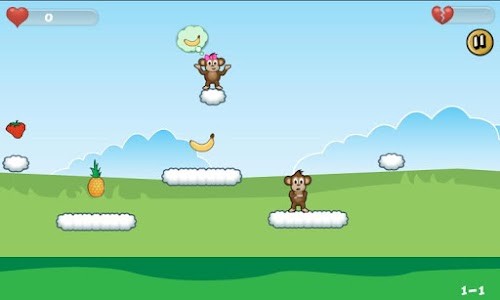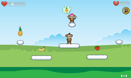 Cutie Monkey - is a fascinating game where the main character is a monkey-boy, which you drive it with your touch screen. Main goal of the game is to collect and bring to monkey-girl fruits that she wants, and get hearts for that. The number of hearts obtained depends on her mood. The longer a monkey-girl waits for its fruit, the angrier she gets. Fruit, which dreams of a monkey-girl at the moment, appears above her head.