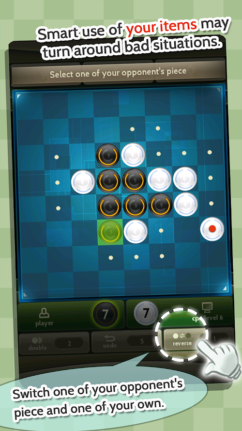 Cyber Reversi is not just a glorified version of the classic Reversi, it features :