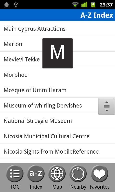 MobileReference Travel Guides provide detailed, practical information about attractions, landmarks, transportation, cultural venues, dining, lodging, history and much more. They are indexed alphabetically and by category, making it easier to access individual articles. Attractions can be viewed on an offline GPS map along with your current location so that you can easily find attractions near you as you explore the city.