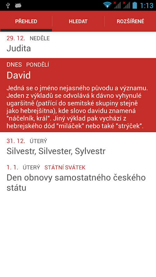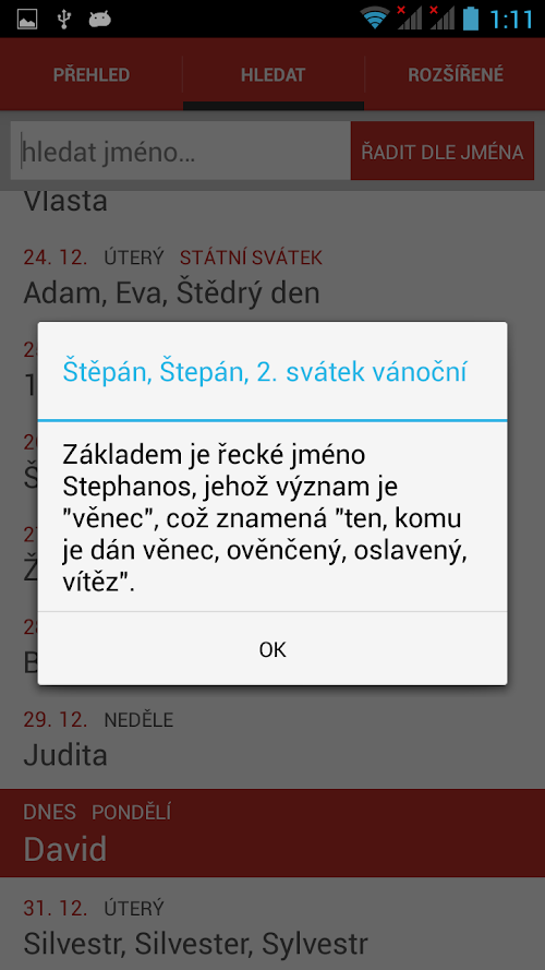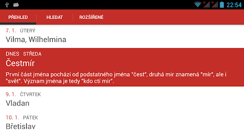 Keywords: czech, name day, name days, nameday, name-day, widget, calendar, today, tomorrow, free, searching, meaning, origin, dashclock extension