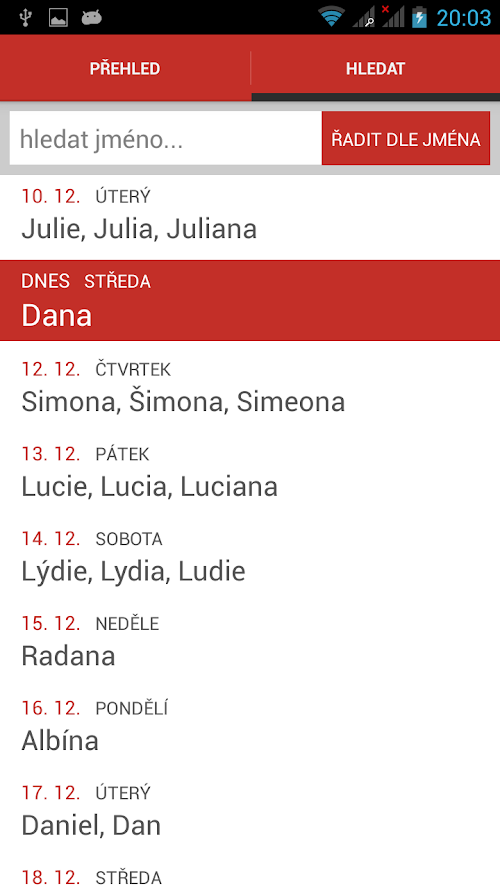 Czech Name Days - FULL VERSION with additional features at https://play.google.com/store/apps/details?id=com.simplworx.namedays.android.