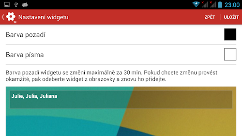 Keywords: czech, name day, name days, nameday, name-day, widget, calendar, today, tomorrow, free, searching, meaning, origin, template, notification, setting, dashclock extension