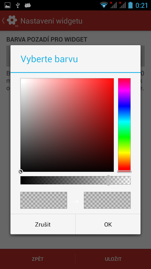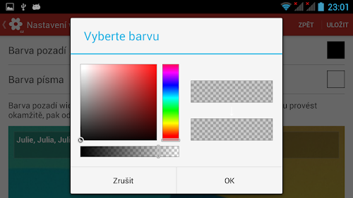 - Allows setting colors of widget (text, background - including transparency).