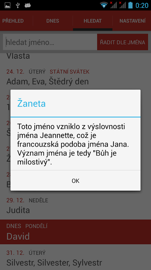 - Application showing meaning and origin of given names (in czech language only).