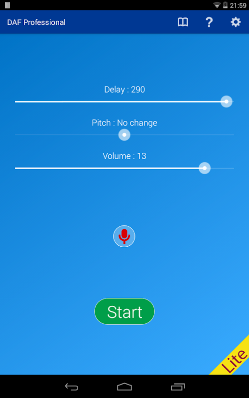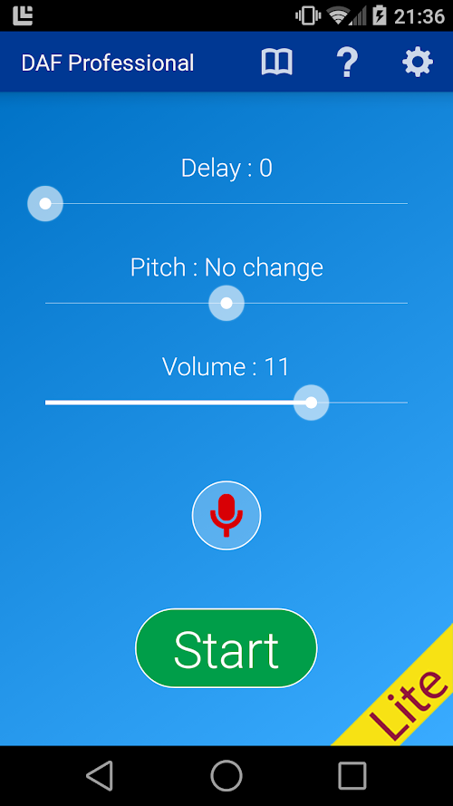 DAF Professional has been designed and tested by a certified and practicing Speech and Language Therapist (MSc, PGDip, BAHons, HPC registered and member of RCSLT). DAF Professional is the most effective and efficient Delayed Auditory Feedback (DAF) currently on the Android Market. No other app delivers the low latency required for effective use.