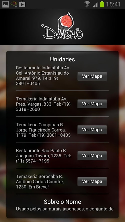 Aplicativo do programa de Fidelidade da rede de comida japonesa Daisho, que conta com restaurantes e temakerias nas principais cidades do estado de São Paulo.