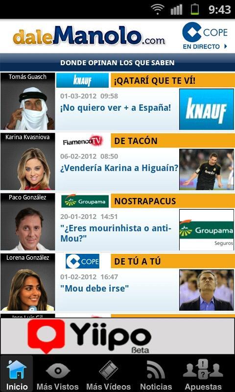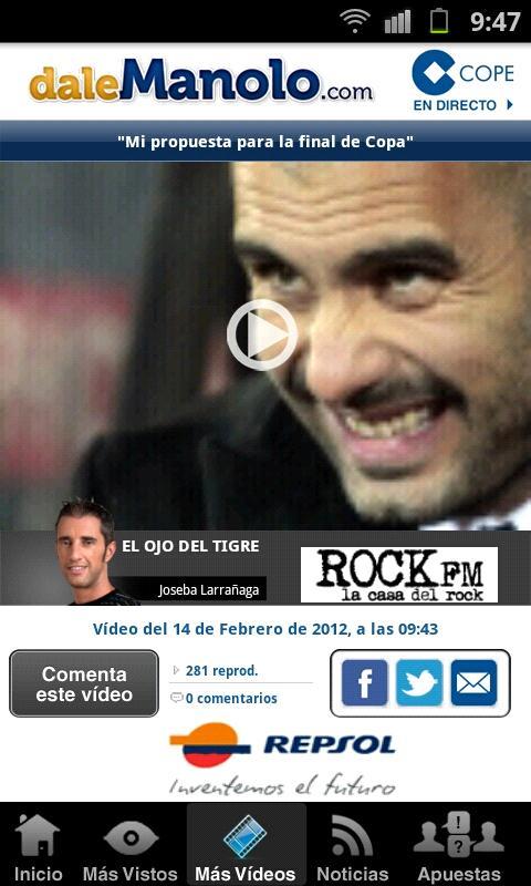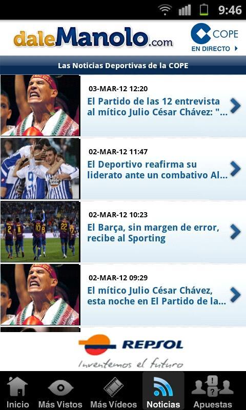dalemanolo.com es el nuevo portal deportivo creado por Medina Media Sports, donde los mejores comunicadores del sector aportan diariamente sus opiniones sobre los temas más polémicos del mundo del deporte. De la mano de Paco González, Manolo Lama, Pepe Domingo Castaño, Xuáncar González y muchos más, se puede disfrutar, a través de Internet y de los teléfonos móviles, de sus video blogs de un minuto en calidad iPhone. Cuenta con aplicaciones gratuitas exclusivas para iPhone, iPad y otras plataformas moviles, para tener acceso a la actualidad desde cualquier lugar.