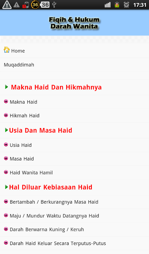 Aplikasi ini membahas tuntas ke-3 permasalahan diatas dan InsyaALLAH setelah membacanya, anda tidak akan bingung lagi dengan segala permasalahan / pertanyaan yang timbul akibat darah tersebut.