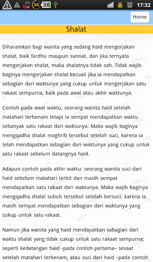 Pertanyaan seperti bolehkah wanita membaca / memegang Al-Quran di saat haid, talak, kewajiban mandi, dsb bisa ditemukan didalamnya.
