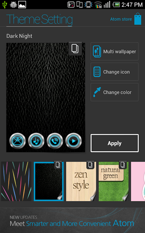 This version of Dark Night Atom theme Android App comes with one universal variant which will work on all the Android devices.