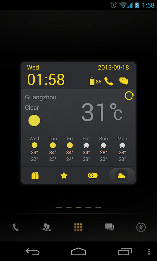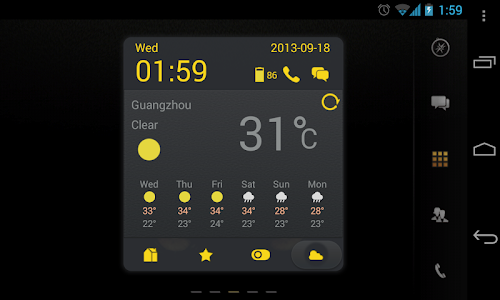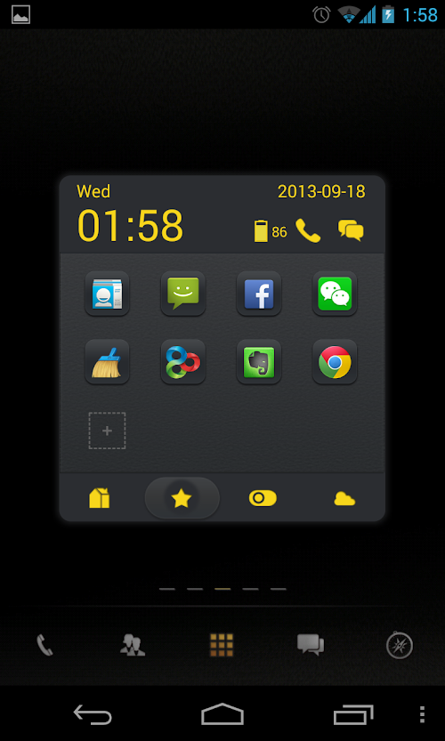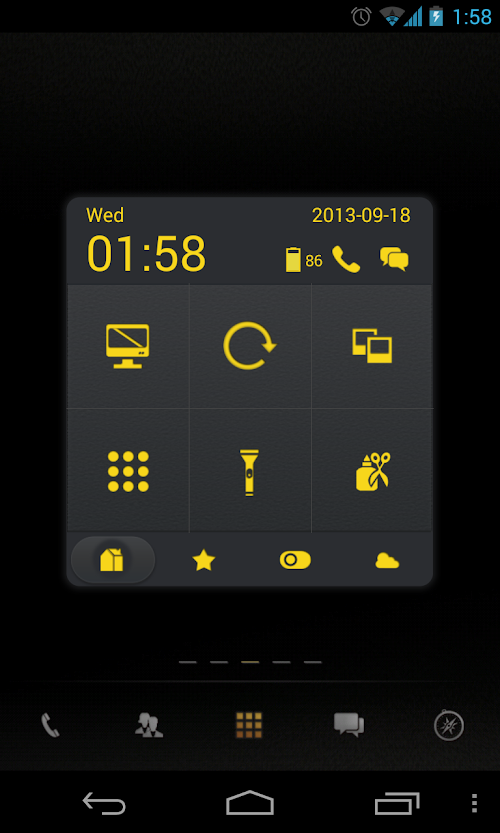 - Quick access to most used apps or functionalities, such as message, address book, screen locker, memory cleaner, flashlight, screenshot etc.