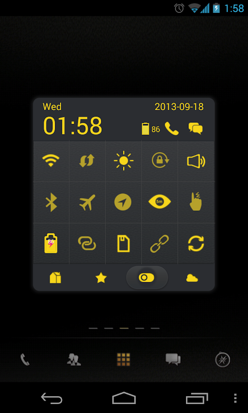 - Shortcuts to 19 system switches, including WIFI, GPS, Bluetooth, Volume, etc.