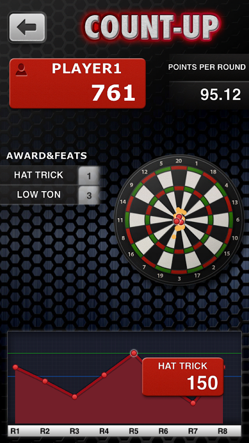 Throw your dart and input your score simply by tap the position on the darts board where your dart was thrown, that makes the scoring simple.