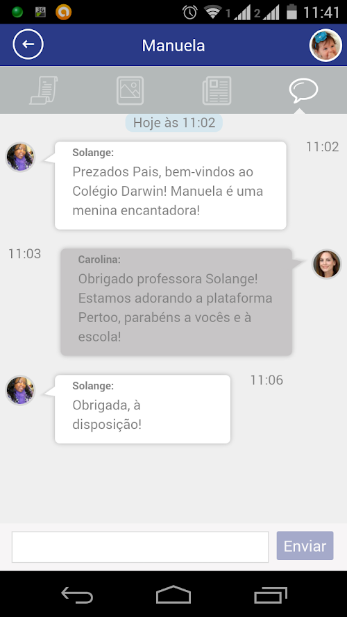 * Obs: O acesso às informações dos alunos é liberado somente após a digitação do código de segurança entregue pela escola pessoalmente aos pais. Darwin College + Pertoo! Get information and communicate with your child's school through this application.
