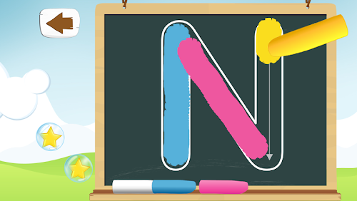 Wenn Sie einen Buchstaben richtig geschrieben haben, bekommen die Kinder maximal drei Sterne. Wenn sie jedoch einen Fehler machen, können sie ihn mit Hilfe eines Schwammes abwischen und es nochmals versuchen.Discover to bring the German alphabet closer to a new way of children.