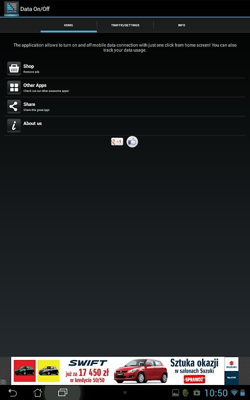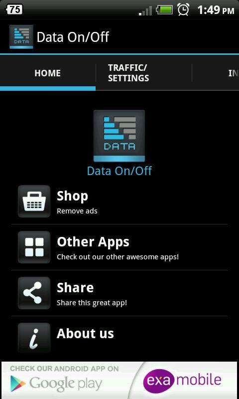 With this application Data on / off you can save battery power and easily manage data traffic costs.